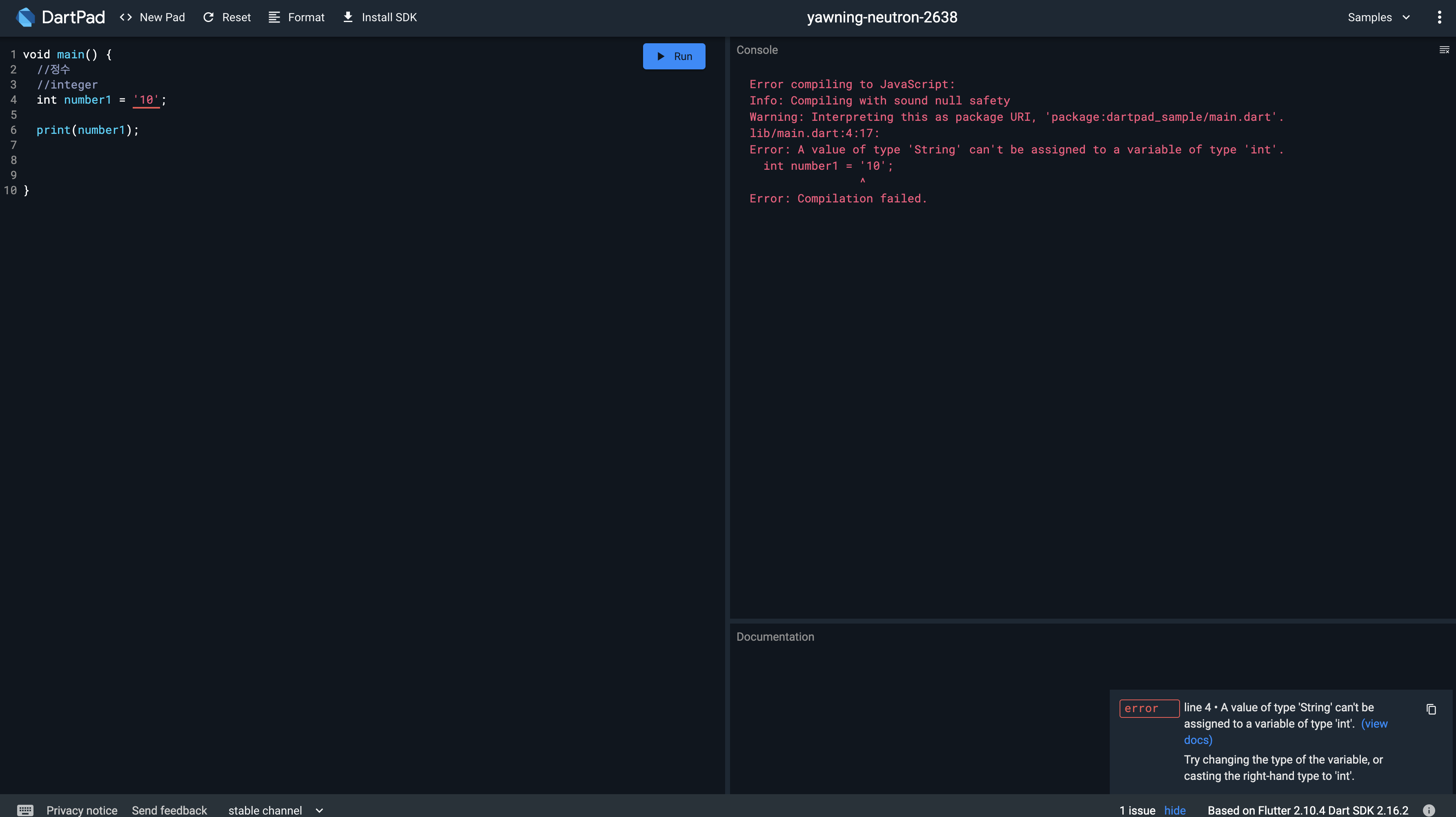 dynamic 변수의 경우는 위 사진과도 같이 처음 String으로 선언된 변수가 int 타입으로 변경이 가능한 것을 볼 수 있다